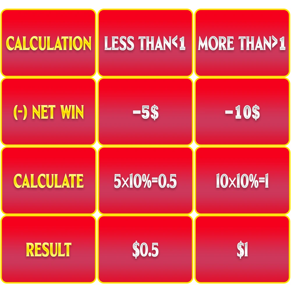 ការគណនា៖ ប្រាក់ចំណេញអវិជ្ជមានរបស់អ្នកលេង - ការផ្សព្វផ្សាយ x 10%
